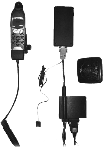 Рис. 6-3. Комплекс DiVo Что входит в состав комплекса DiVo? Комплект поставки DiVo показан на рис. 6-3. В него входит следующее оборудование: · компактный центральный блок, выполняющий функции управления, обработки и распознавания речи; · высококачественный направленный микрофон; · держатель для мобильного телефона с кабелем питания и разъемом для прикуривателя (комплекс может питаться как от прикуривателя, так и непосредственно от электросети автомобиля); · кнопка управления системой; · компактный громкоговоритель; · кабель отключения звука автомобильной аудио-системы; · антенный кабель для подключения внешней антенны Существующая версия комплекса DiVo может работать совместно с мобильными телефонами Ericsson, Nokia и Siemens. Водитель может выдавать комплексу DiVo до 20 голосовых команд, таких как набор телефонного номера, повтор последнего набиравшегося номера, выбор номера телефона из голосовой телефонной книги, емкость которой составляет 40-50 записей. Для наполнения телефонной книги комплекса DiVo можно использовать содержимое телефонной книги, хранящейся в памяти мобильного телефона. Так как в составе комплекса DiVo не предусмотрен монитор (им просто было бы невозможно пользоваться во время вождения автомобиля), все операции выполняются с помощью удобного и разветвленного голосового меню. Номер можно набирать, диктуя цифры по одной или цепочками, состоящими не более чем из 9 цифр. Выбор нужной записи из голосовой телефонной книги можно сделать либо одной фразой, либо при помощи голосового меню. Существует также возможность голосового набора номера аварийной службы. Комплекс DiVo может работать в таком режиме, когда он исполняет голосовые команды, произнесенные любым диктором (команды управления можно произносить на русском, английском и немецком языке). При этом предусмотрен авторизованный доступ к голосовой телефонной книге, ограничивающей использование комплекса посторонними людьми. Что касается «пробуждения» комплекса DiVo, то для этого можно использовать голосовую команду или просто нажать соответствующую кнопку, расположенную на корпусе центрального блока. Во время простоя комплекс автоматически выключается, что предотвращает ложные срабатывания на посторонние звуковые сигналы. Существует также возможность включения и использование некоторых функций кнопкой, смонтированной на колонке рулевого управления автомобиля. Комплекс DiVo может работать в режиме полного дуплекса. При этом он обеспечивает подавление эха и высокоэффективную очистку сигнала от шумов. Это устраняет влияние на работу системы шумов, сопровождающих движение транспорта, гул колес и ветра, шум кондиционера или обогревателя и др. Кроме того, на время телефонного разговора предусмотрено автоматическое отключение звука автомобильной аудиосистемы. Голосовое разграничение доступа Используя современные речевые технологии, можно создавать системы голосового разграничения доступа. Такие системы могут реагировать на парольные фразы (типа «Сезам, откройся!») или на особенности голоса того или иного человека. Компания «Центр речевых технологий» создала библиотеку разграничения доступа по голосу VoiceKey Kit, которую можно легко встроить в любые приложения. Это могут быть офисные приложения, компьютерные игры, системы «родительского контроля» и др. Очевидным дос