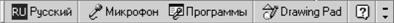 Рис. 6-30. Инструментальная панель Language Bar Эта панель выполняет сразу несколько функций, например, позволяет переключать раскладки клавиатуры и открывает доступ к некоторым другим возможностям и программам. Нас будут интересовать только средства этой панели, имеющие отношение к распознаванию и синтезу речи. Кнопка Микрофон позволяет включать и выключать микрофон. Вы можете выключить микрофон и при помощи голоса, для чего нужно произнести слово microphone. Вы можете придать панели Language Bar компактный вид, более удобный для работы. Для этого щелкните окно панели правой клавишей мыши, а затем выберите из контекстного меню строку Текстовые метки. После этого инструментальная панель Language Bar примет вид, показанный на рис. 6-31.