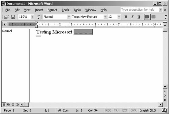 Рис. 6-41. Диктовка текста По мере распознавания текста эта полоса будет замещаться словами. Во время диктовки Вам необязательно дожидаться, пока все произнесенные слова будут распознаны. Система будет выполнять распознавание в фоновом режиме. Диктуйте текст обычным голосом, не делая паузу между словами. Система распознавания речи, поставляющаяся в составе пакета Microsoft Office XP, способна распознавать слитную речь. Более того, иногда ей удается лучше распознавать последовательность слов, если они произнесены слитно, а не раздельно. Если качество распознавания Вас не удовлетворяет, следите за сообщениями, появляющимися в правой части инструментальной панели Language Bar. Возможно, Вы говорите слишком тихо или напротив, слишком громко. При необходимости проведите дополнительное обучение системы распознавания текста, о чем мы говорили выше. Работа с элементами пользовательского интерфейса и форматирование текста Если Вам нужно работать с меню, диалоговыми окнами или инструментальными панелями, перейдите в командный режим. Произнесите название меню, строки меню, окна или панели, и система распознавания выполнит над ними необходимую операцию. Подробная информация о форматировании текста и выполнении других голосовых команд приведена в справочной системе пакета Microsoft Office XP. В качестве примера приведем последовательность голосовых команд, необходимых для изменения шрифтового оформления. Если нужно выбрать шрифт Times New Roman, сделайте следующее: · перейдите в командный режим, сказав фразу voice command; · откройте меню Формат, сказав format; · откройте диалоговое окно Шрифт, сказав font; · измените шрифт, сказав Times New Roman; · закройте диалоговое окно Шрифт, сказав OK. Предварительно необходимо выделить текст при помощи мыши или клавиатуры. Можно выделить фрагменты текста и голосом. Для выделения следующего слова нужно произнести команду select next word, для выделения последнего слова в строке — команду select last word. Чтобы выделить следующую строку, требуется произнести команду select next line, а для выделения последней строки — команду select last line. Можно также выделить весь параграф, если произнести команду select paragraph. Некоторые часто применяемые операции форматирования можно выполнить проще. Если, например, нужно выделить фрагмент текста жирным шрифтом или подчеркиванием, достаточно перейти в командный режим, выделить текст мышью или клавиатурой, а затем произнести, соответственно, слово bold или underline. В том случае, когда нужно изменить шрифт выделенного фрагмента текста, можно произнести в командном режиме слово font, а затем название шрифта, например, Times New Roman. Другие примеры Вы найдете в документации к пакету Microsoft Office XP и в справочной системе. Заметим, что в командном режиме в правой части инструментальной панели Language Bar отображается название последней команды, которую системе удалось распознать. В процессе диктовки текста неизбежно будут возникать ошибки. Для их исправления в системе распознавания речи пакета Microsoft Office XP предусмотрены простые и удобные в использовании средства, предполагающие использование как голосовых команд, так и операций, выполняемых с помощью мыши и клавиатуры. В том случае, если Вы ошиблись при диктовке, можно удалить только что введенный текст. Для этого достаточно произнести фразу scratch that. Можно щелкнуть ошибочный фрагмент текста право